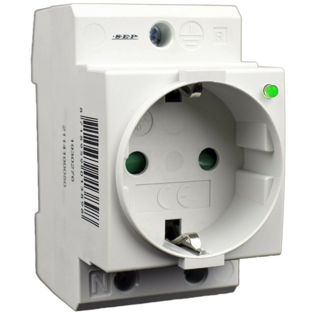 SEP contactdoos grijs, 2p+PE, 230VAC, 16A, power indicatie led, DIN-modulair, kinderveilig