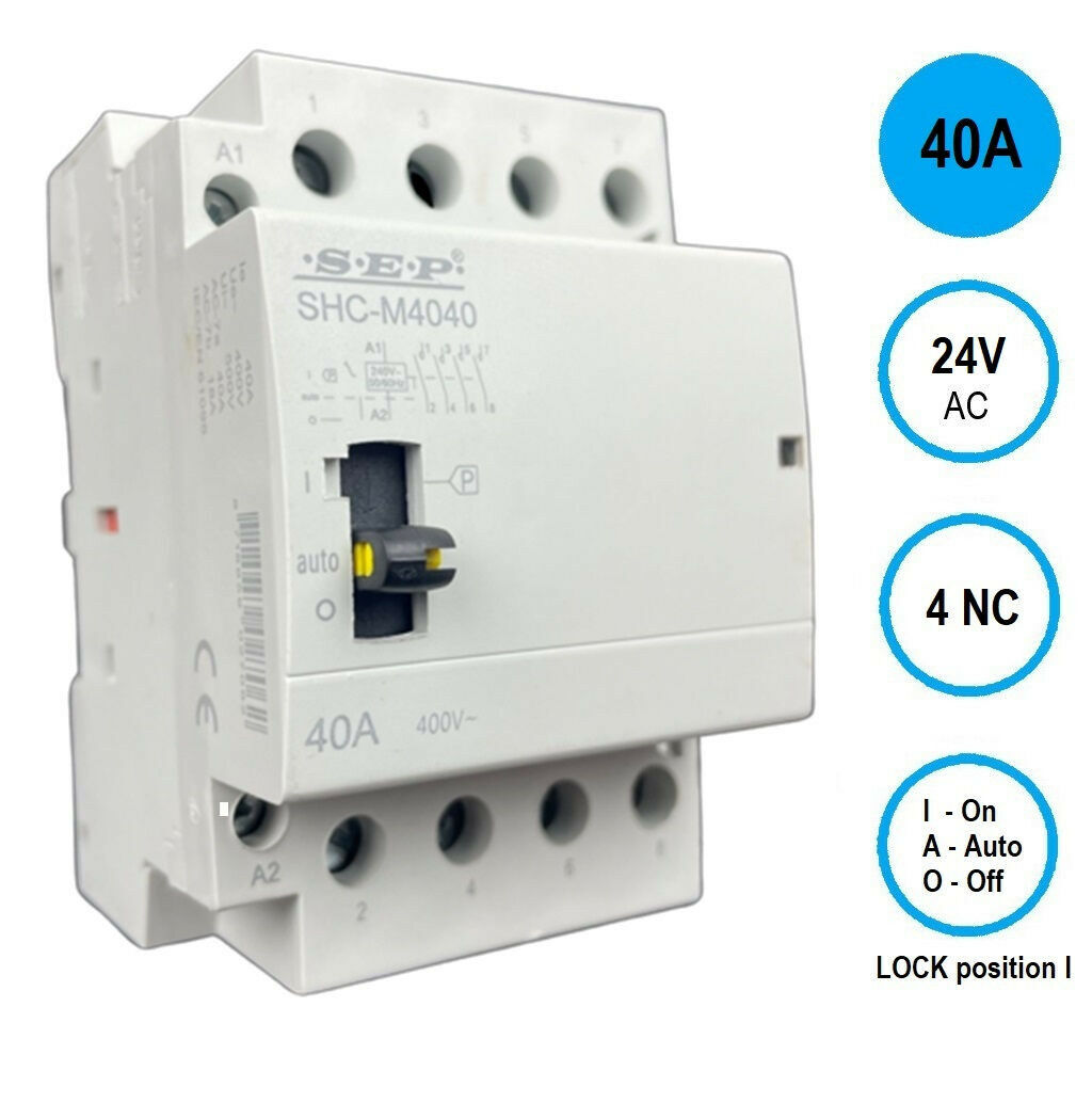 SEP SHC Handbediend Inst.relais 24VAC, 40A, 4NC