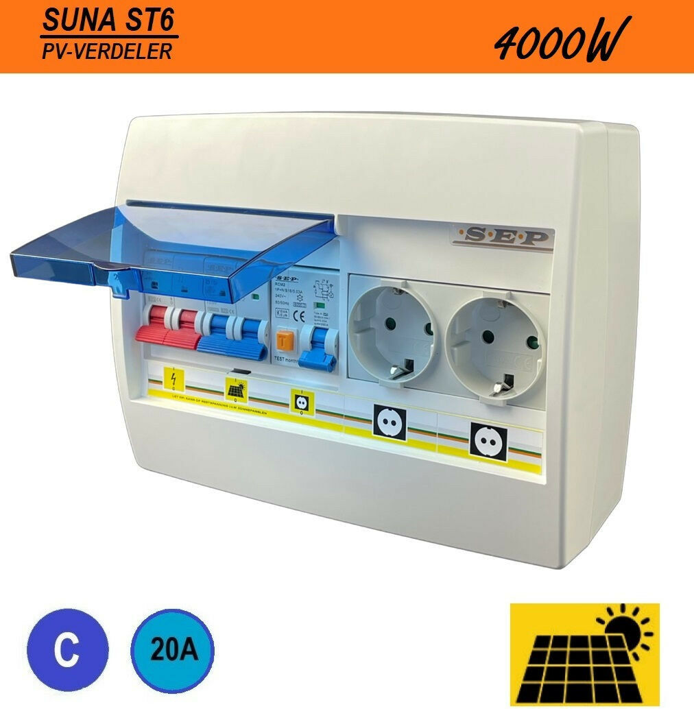 SEP PV-verdeler SUNA ST6- omvormerbeveiliging installatieautomaat 1p+n C20 - tweevoudige contactdoos