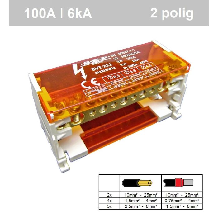 SEP BVT-211 verdeelset 100A 2x11 aansluitingen 500VAC/DC
