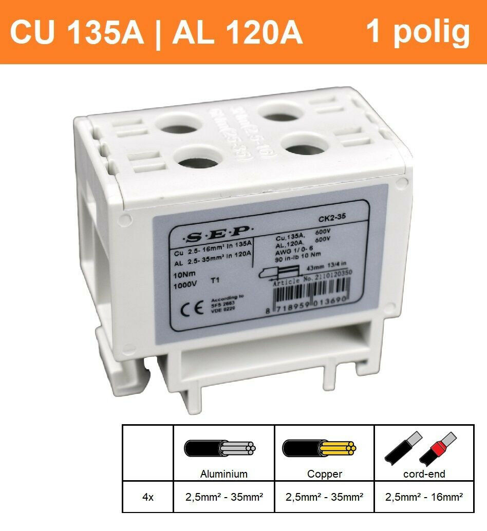 | Aandraaimoment | 3 Nm (2,5-16mm2), 6 Nm (25-35mm2) |