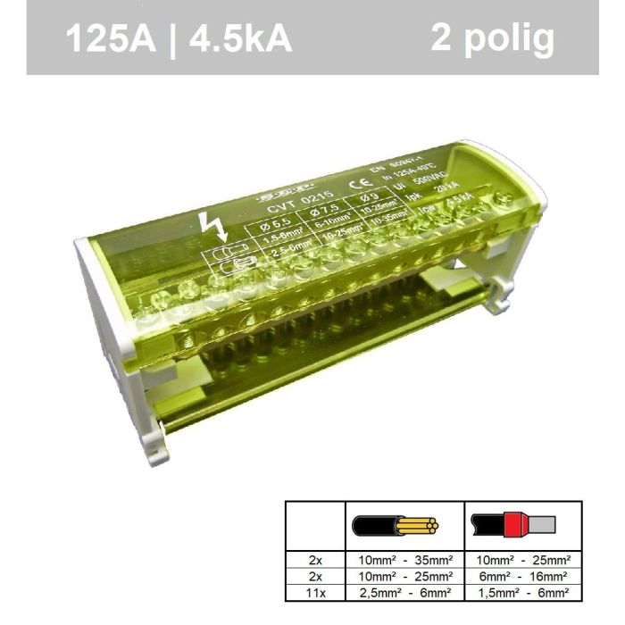 SEP CVT215 tweepolig verdeelset t/m 125A met 15 aansluitingen.