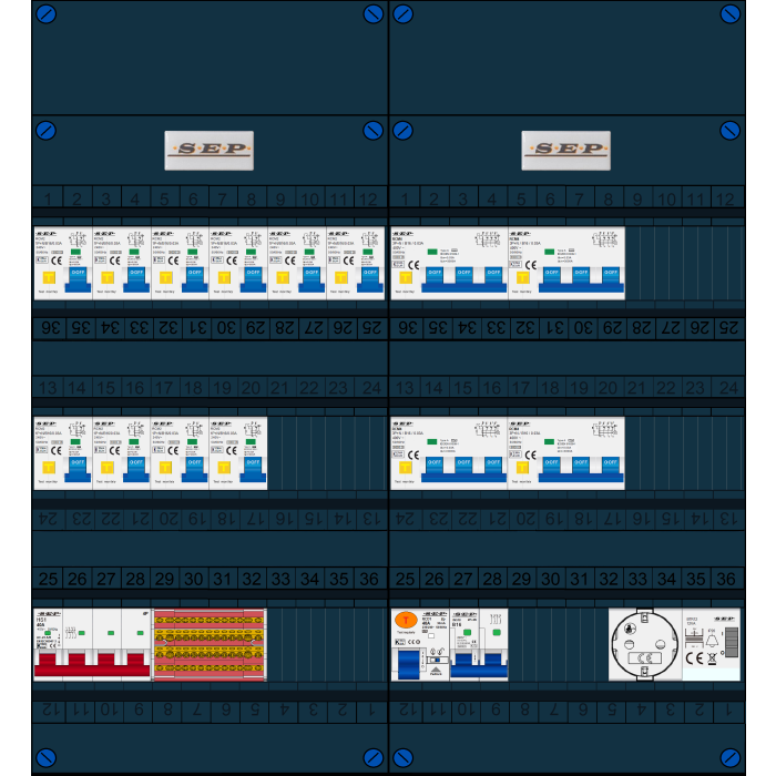 De SEP FS40A serie groepenkast is een typische woningbouw verdeler welke zeer geschikt is voor renovatie en nieuwbouw toepassingen. Doordat de breedte van 220mm gelijk is aan de oude groepenkast is het uitwisselen zeer eenvoudig en hoeft er weinig te worden aangepast. Buiten de standaard leverbare groepenkasten is het mogelijk om een klant-specifieke oplossing aan te vragen. Deze kasten zijn eenvoudig uit te breiden. Alle groepenkasten worden in eigen beheer geassembleerd en getest. Alle componenten worden onder spanning getest, de gebruikte aansluitmaterialen zijn specifiek ontworpen voor deze toepassing. Iedere schroef wordt met de hand aangedraaid op de juiste aandraaimoment.