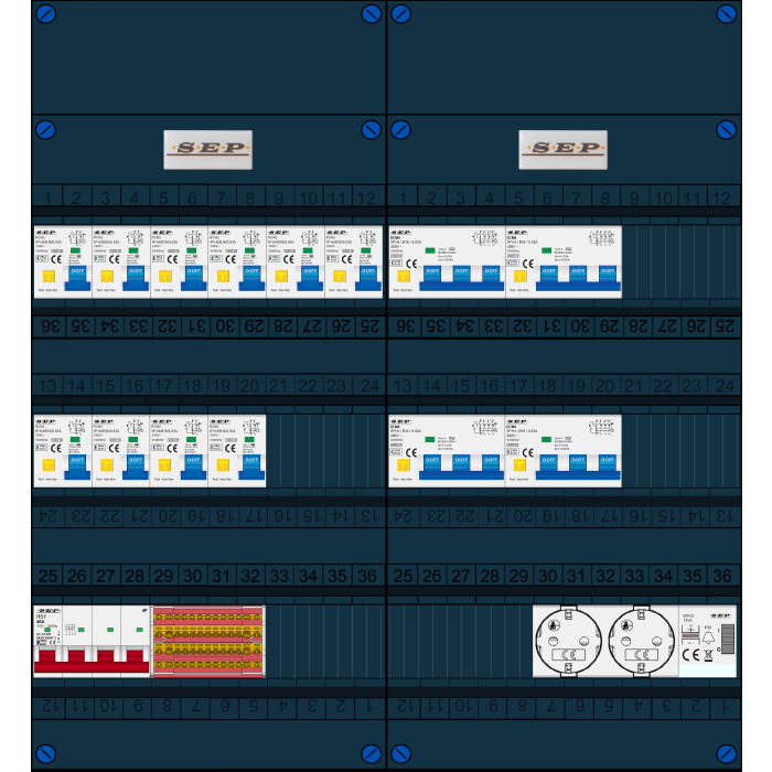 De SEP FS40A serie groepenkast is een typische woningbouw verdeler welke zeer geschikt is voor renovatie en nieuwbouw toepassingen. Doordat de breedte van 220mm gelijk is aan de oude groepenkast is het uitwisselen zeer eenvoudig en hoeft er weinig te worden aangepast. Buiten de standaard leverbare groepenkasten is het mogelijk om een klant-specifieke oplossing aan te vragen. Deze kasten zijn eenvoudig uit te breiden. Alle groepenkasten worden in eigen beheer geassembleerd en getest. Alle componenten worden onder spanning getest, de gebruikte aansluitmaterialen zijn specifiek ontworpen voor deze toepassing. Iedere schroef wordt met de hand aangedraaid op de juiste aandraaimoment.