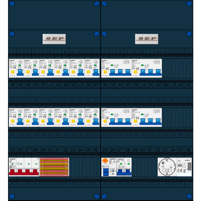 De SEP FS40A serie groepenkast is een typische woningbouw verdeler welke zeer geschikt is voor renovatie en nieuwbouw toepassingen. Doordat de breedte van 220mm gelijk is aan de oude groepenkast is het uitwisselen zeer eenvoudig en hoeft er weinig te worden aangepast. Buiten de standaard leverbare groepenkasten is het mogelijk om een klant-specifieke oplossing aan te vragen. Deze kasten zijn eenvoudig uit te breiden. Alle groepenkasten worden in eigen beheer geassembleerd en getest. Alle componenten worden onder spanning getest, de gebruikte aansluitmaterialen zijn specifiek ontworpen voor deze toepassing. Iedere schroef wordt met de hand aangedraaid op de juiste aandraaimoment.