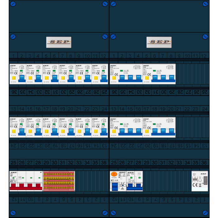 De SEP FS40A serie groepenkast is een typische woningbouw verdeler welke zeer geschikt is voor renovatie en nieuwbouw toepassingen. Doordat de breedte van 220mm gelijk is aan de oude groepenkast is het uitwisselen zeer eenvoudig en hoeft er weinig te worden aangepast. Buiten de standaard leverbare groepenkasten is het mogelijk om een klant-specifieke oplossing aan te vragen. Deze kasten zijn eenvoudig uit te breiden. Alle groepenkasten worden in eigen beheer geassembleerd en getest. Alle componenten worden onder spanning getest, de gebruikte aansluitmaterialen zijn specifiek ontworpen voor deze toepassing. Iedere schroef wordt met de hand aangedraaid op de juiste aandraaimoment.