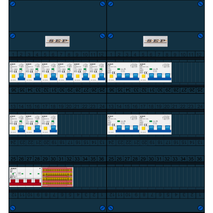 De SEP FS40A serie groepenkast is een typische woningbouw verdeler welke zeer geschikt is voor renovatie en nieuwbouw toepassingen. Doordat de breedte van 220mm gelijk is aan de oude groepenkast is het uitwisselen zeer eenvoudig en hoeft er weinig te worden aangepast. Buiten de standaard leverbare groepenkasten is het mogelijk om een klant-specifieke oplossing aan te vragen. Deze kasten zijn eenvoudig uit te breiden. Alle groepenkasten worden in eigen beheer geassembleerd en getest. Alle componenten worden onder spanning getest, de gebruikte aansluitmaterialen zijn specifiek ontworpen voor deze toepassing. Iedere schroef wordt met de hand aangedraaid op de juiste aandraaimoment.