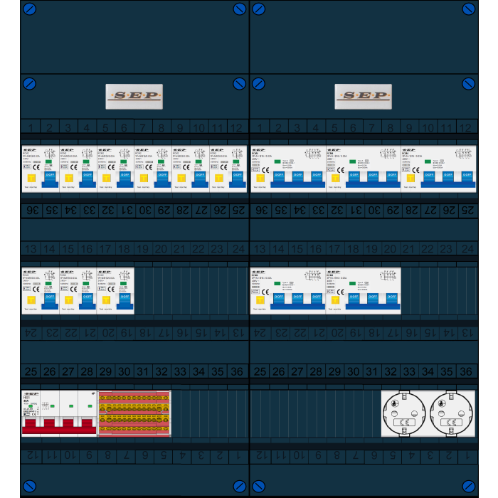 De SEP FS40A serie groepenkast is een typische woningbouw verdeler welke zeer geschikt is voor renovatie en nieuwbouw toepassingen. Doordat de breedte van 220mm gelijk is aan de oude groepenkast is het uitwisselen zeer eenvoudig en hoeft er weinig te worden aangepast. Buiten de standaard leverbare groepenkasten is het mogelijk om een klant-specifieke oplossing aan te vragen. Deze kasten zijn eenvoudig uit te breiden. Alle groepenkasten worden in eigen beheer geassembleerd en getest. Alle componenten worden onder spanning getest, de gebruikte aansluitmaterialen zijn specifiek ontworpen voor deze toepassing. Iedere schroef wordt met de hand aangedraaid op de juiste aandraaimoment.