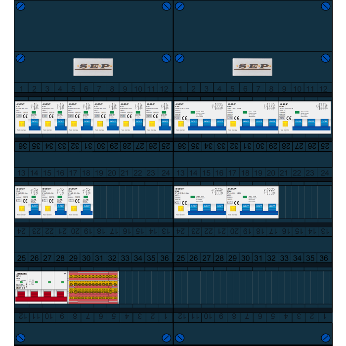 De SEP FS40A serie groepenkast is een typische woningbouw verdeler welke zeer geschikt is voor renovatie en nieuwbouw toepassingen. Doordat de breedte van 220mm gelijk is aan de oude groepenkast is het uitwisselen zeer eenvoudig en hoeft er weinig te worden aangepast. Buiten de standaard leverbare groepenkasten is het mogelijk om een klant-specifieke oplossing aan te vragen. Deze kasten zijn eenvoudig uit te breiden. Alle groepenkasten worden in eigen beheer geassembleerd en getest. Alle componenten worden onder spanning getest, de gebruikte aansluitmaterialen zijn specifiek ontworpen voor deze toepassing. Iedere schroef wordt met de hand aangedraaid op de juiste aandraaimoment.