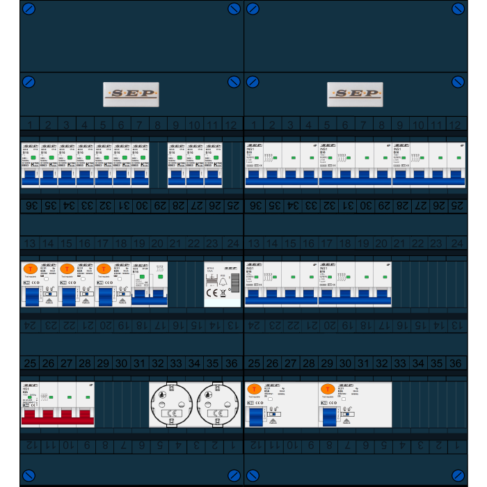 De SEP FS63A serie groepenkast is een woningbouw verdeler welke is voorbereid op PV en EV aansluitingen. De hoofdschakelaar, aardlekschakelaars en interne bedrading zijn uitgevoerd en geschikt voor 63A. Doordat de breedte van 220mm gelijk is aan de oude groepenkast is het uitwisselen zeer eenvoudig en hoeft er weinig te worden aangepast. Buiten de standaard leverbare groepenkasten is het mogelijk om een klant-specifieke oplossing aan te vragen. Deze kasten zijn eenvoudig uit te breiden. Alle groepenkasten worden in eigen beheer geassembleerd en getest. Alle componenten worden onder spanning getest, de gebruikte aansluitmaterialen zijn specifiek ontworpen voor deze toepassing. Iedere schroef wordt met de hand aangedraaid op de juiste aandraaimoment.