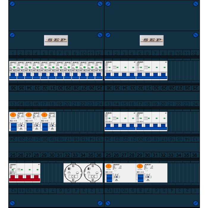 De SEP FS63A serie groepenkast is een woningbouw verdeler welke is voorbereid op PV en EV aansluitingen. De hoofdschakelaar, aardlekschakelaars en interne bedrading zijn uitgevoerd en geschikt voor 63A. Doordat de breedte van 220mm gelijk is aan de oude groepenkast is het uitwisselen zeer eenvoudig en hoeft er weinig te worden aangepast. Buiten de standaard leverbare groepenkasten is het mogelijk om een klant-specifieke oplossing aan te vragen. Deze kasten zijn eenvoudig uit te breiden. Alle groepenkasten worden in eigen beheer geassembleerd en getest. Alle componenten worden onder spanning getest, de gebruikte aansluitmaterialen zijn specifiek ontworpen voor deze toepassing. Iedere schroef wordt met de hand aangedraaid op de juiste aandraaimoment.