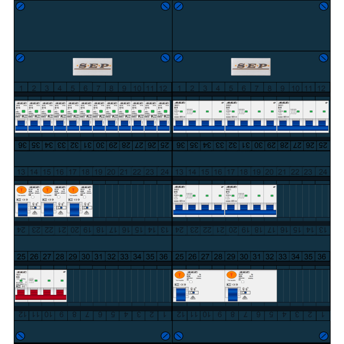 De SEP FS63A serie groepenkast is een woningbouw verdeler welke is voorbereid op PV en EV aansluitingen. De hoofdschakelaar, aardlekschakelaars en interne bedrading zijn uitgevoerd en geschikt voor 63A. Doordat de breedte van 220mm gelijk is aan de oude groepenkast is het uitwisselen zeer eenvoudig en hoeft er weinig te worden aangepast. Buiten de standaard leverbare groepenkasten is het mogelijk om een klant-specifieke oplossing aan te vragen. Deze kasten zijn eenvoudig uit te breiden. Alle groepenkasten worden in eigen beheer geassembleerd en getest. Alle componenten worden onder spanning getest, de gebruikte aansluitmaterialen zijn specifiek ontworpen voor deze toepassing. Iedere schroef wordt met de hand aangedraaid op de juiste aandraaimoment.