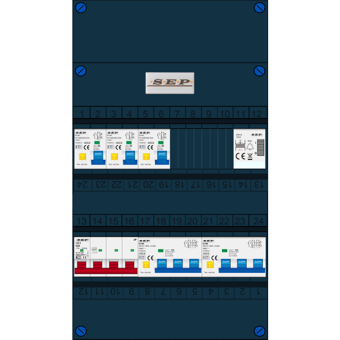 De SEP FS63A serie groepenkast is een woningbouw verdeler welke is voorbereid op PV en EV aansluitingen. De hoofdschakelaar, aardlekschakelaars en interne bedrading zijn uitgevoerd en geschikt voor 63A. Doordat de breedte van 220mm gelijk is aan de oude groepenkast is het uitwisselen zeer eenvoudig en hoeft er weinig te worden aangepast. Buiten de standaard leverbare groepenkasten is het mogelijk om een klant-specifieke oplossing aan te vragen. Deze kasten zijn eenvoudig uit te breiden. Alle groepenkasten worden in eigen beheer geassembleerd en getest. Alle componenten worden onder spanning getest, de gebruikte aansluitmaterialen zijn specifiek ontworpen voor deze toepassing. Iedere schroef wordt met de hand aangedraaid op de juiste aandraaimoment.