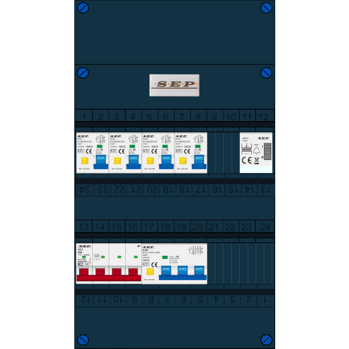 De SEP FS63A serie groepenkast is een woningbouw verdeler welke is voorbereid op PV en EV aansluitingen. De hoofdschakelaar, aardlekschakelaars en interne bedrading zijn uitgevoerd en geschikt voor 63A. Doordat de breedte van 220mm gelijk is aan de oude groepenkast is het uitwisselen zeer eenvoudig en hoeft er weinig te worden aangepast. Buiten de standaard leverbare groepenkasten is het mogelijk om een klant-specifieke oplossing aan te vragen. Deze kasten zijn eenvoudig uit te breiden. Alle groepenkasten worden in eigen beheer geassembleerd en getest. Alle componenten worden onder spanning getest, de gebruikte aansluitmaterialen zijn specifiek ontworpen voor deze toepassing. Iedere schroef wordt met de hand aangedraaid op de juiste aandraaimoment.