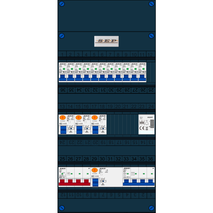De SEP FS63A serie groepenkast is een woningbouw verdeler welke is voorbereid op PV en EV aansluitingen. De hoofdschakelaar, aardlekschakelaars en interne bedrading zijn uitgevoerd en geschikt voor 63A. Doordat de breedte van 220mm gelijk is aan de oude groepenkast is het uitwisselen zeer eenvoudig en hoeft er weinig te worden aangepast. Buiten de standaard leverbare groepenkasten is het mogelijk om een klant-specifieke oplossing aan te vragen. Deze kasten zijn eenvoudig uit te breiden. Alle groepenkasten worden in eigen beheer geassembleerd en getest. Alle componenten worden onder spanning getest, de gebruikte aansluitmaterialen zijn specifiek ontworpen voor deze toepassing. Iedere schroef wordt met de hand aangedraaid op de juiste aandraaimoment.