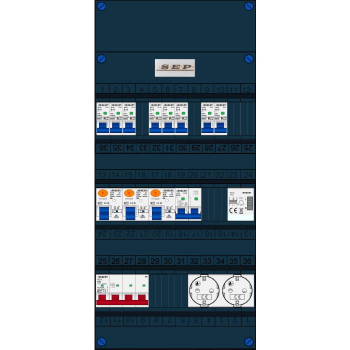 De SEP FS63A serie groepenkast is een woningbouw verdeler welke is voorbereid op PV en EV aansluitingen. De hoofdschakelaar, aardlekschakelaars en interne bedrading zijn uitgevoerd en geschikt voor 63A. Doordat de breedte van 220mm gelijk is aan de oude groepenkast is het uitwisselen zeer eenvoudig en hoeft er weinig te worden aangepast. Buiten de standaard leverbare groepenkasten is het mogelijk om een klant-specifieke oplossing aan te vragen. Deze kasten zijn eenvoudig uit te breiden. Alle groepenkasten worden in eigen beheer geassembleerd en getest. Alle componenten worden onder spanning getest, de gebruikte aansluitmaterialen zijn specifiek ontworpen voor deze toepassing. Iedere schroef wordt met de hand aangedraaid op de juiste aandraaimoment.