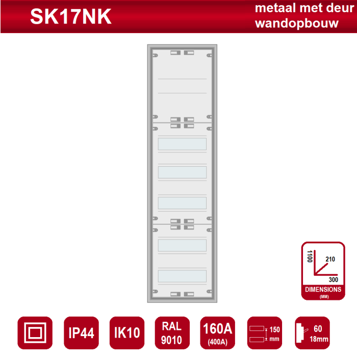 SEP PRO IP44 SK17NK 60mod met klemmenveld (b=300, h=1100, d=210mm)