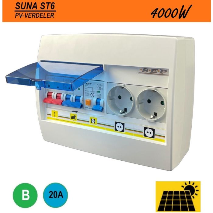 SEP PV-verdeler SUNA ST6- omvormerbeveiliging installatieautomaat 1p+n B20 - tweevoudige contactdoos