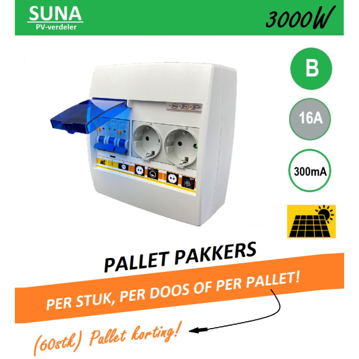 SEP PV-verdeler SUNA - omvormerbeveiliging aardlekautomaat 1p+n B16/300mA - tweevoudige contactdoos