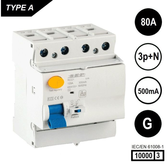SEP RCD1 Type A[G] al.schak 4p 80A 500mA 10kA