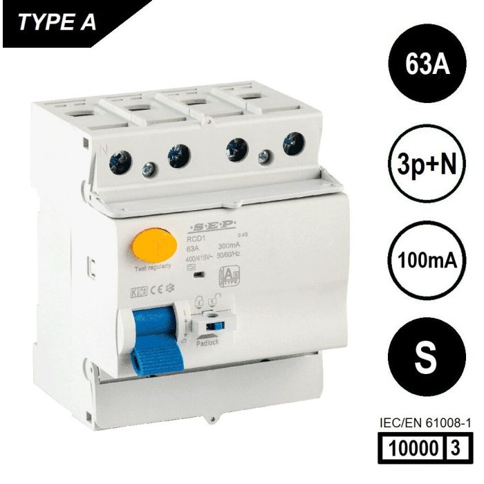 SEP RCD1 Type A[S] al.schak 4p 63A 100mA 10kA
