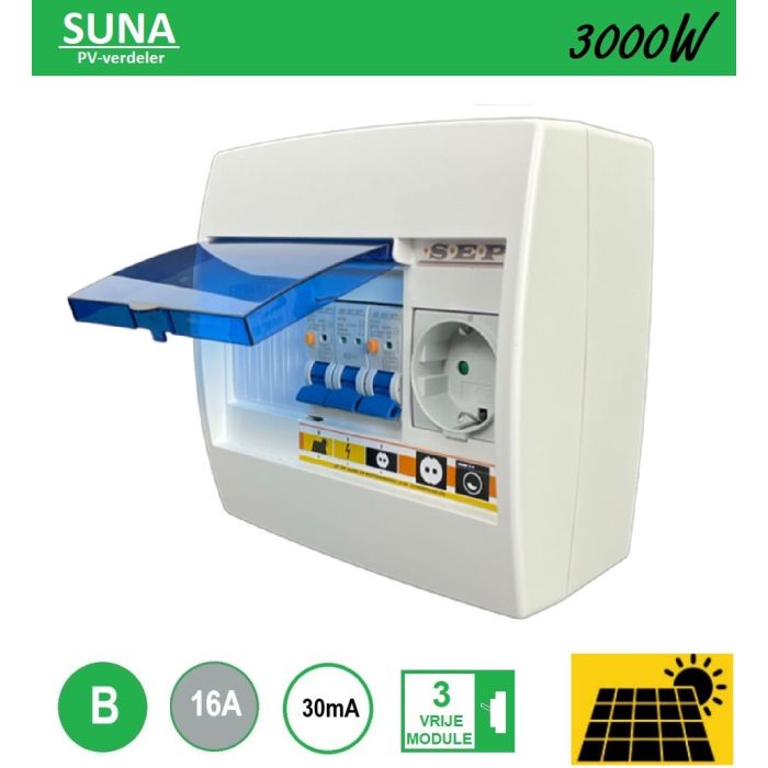 SEP SUNA ST6- PV-verdeler - omvormerbeveiliging aardlekautomaat 1p+n B16 30mA - enkelvoudige contactdoos