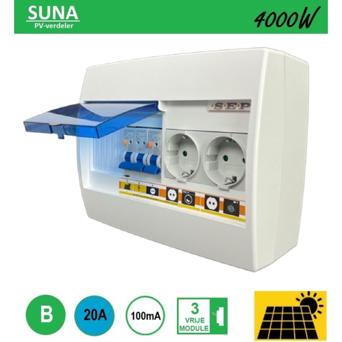 SEP SUNA ST6- PV-verdeler - omvormerbeveiliging aardlekautomaat 1p+n B20 100mA - tweevoudige contactdoos