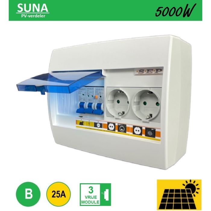 SEP SUNA ST6- PV-verdeler - omvormerbeveiliging installatieautomaat 1p+n B25 - tweevoudige contactdoos